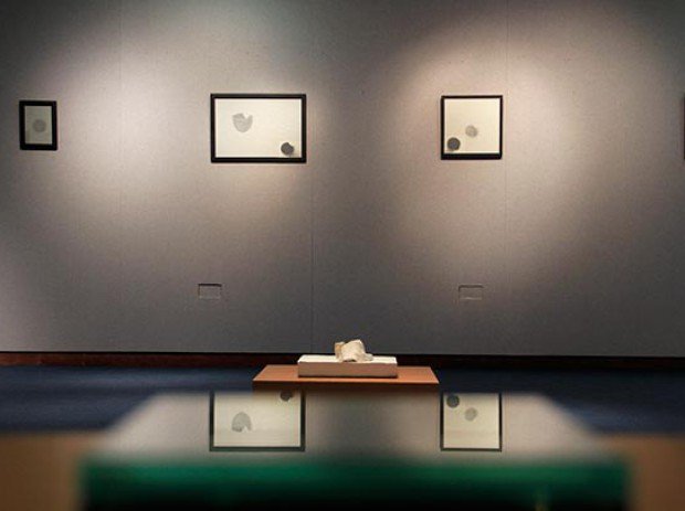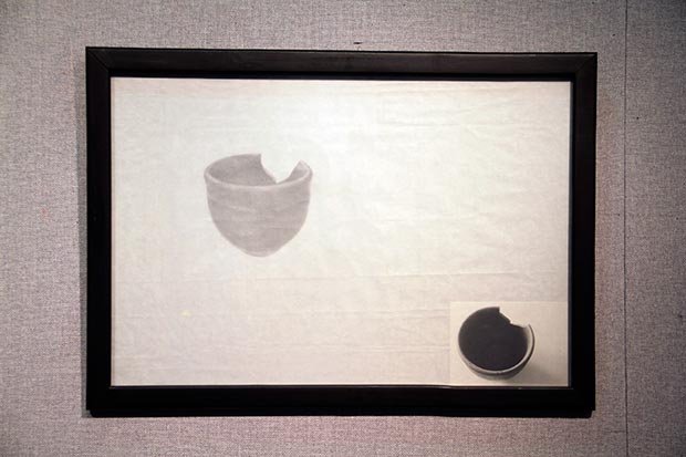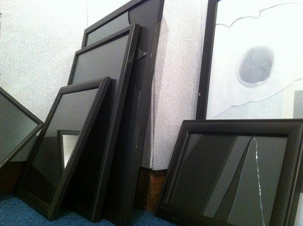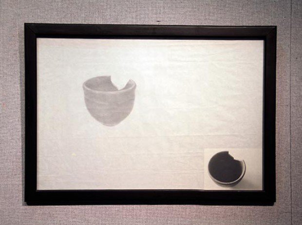 a series of 12 units of graphite drawing on rice paper, mounted with used frames
