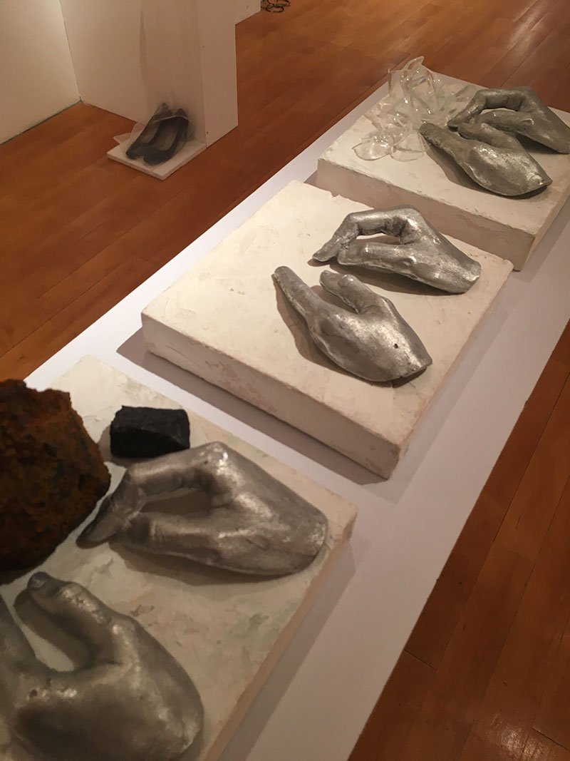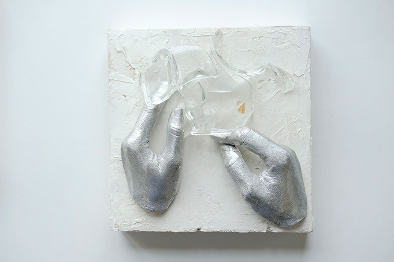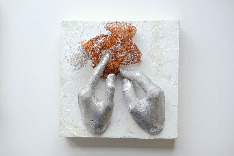 Copper, tar, glasses, stainless steel wire, modelling gel, recycled wood