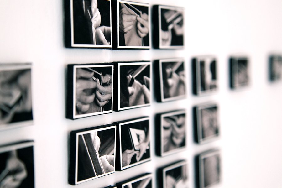 a series of 28 units video clip prints on cloth bounded cuboids